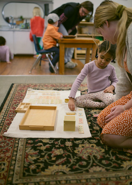 We are a private preschool and kindergarten serving children between the ages of three and six established by moms who were inspired by the Montessori method of education. We believe that a loving and respectful environment is ideal for children to thrive, and it is our goal to establish that environment.